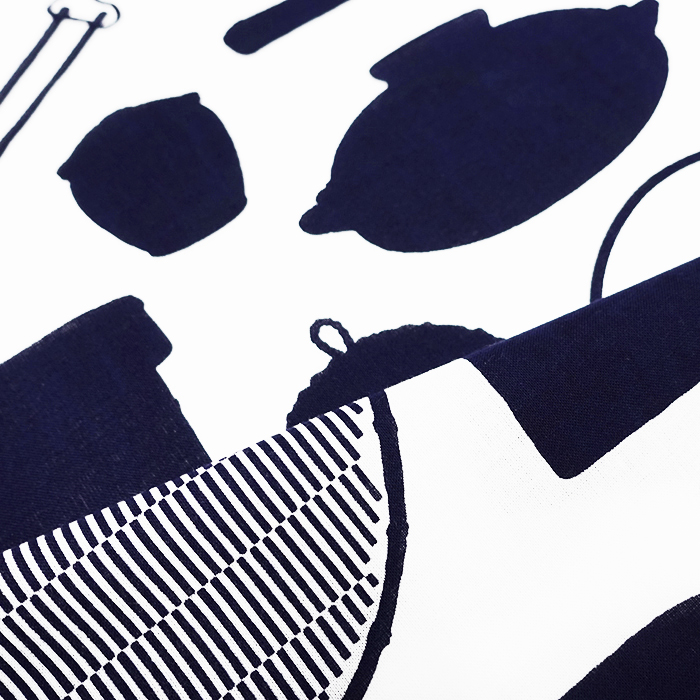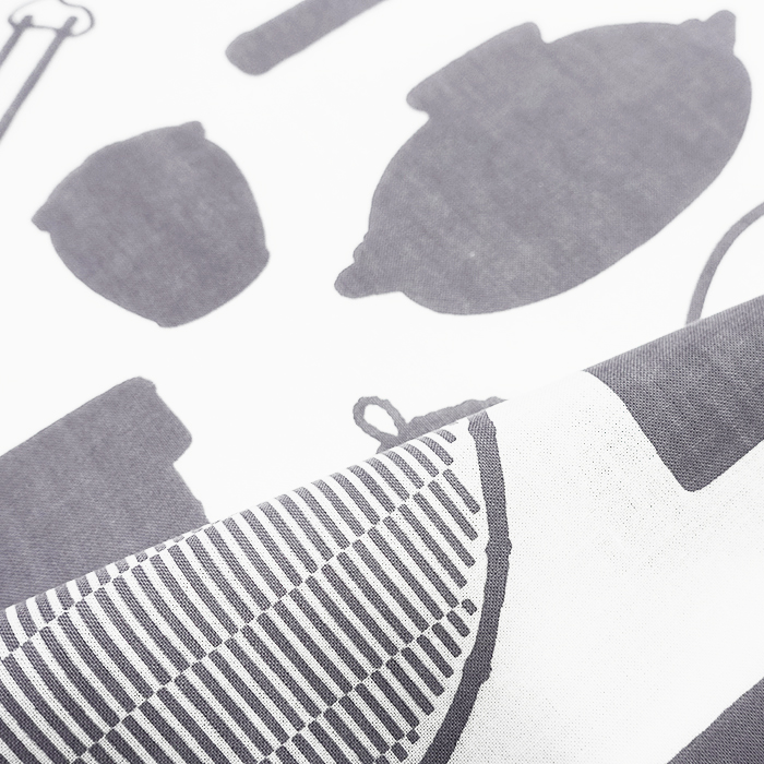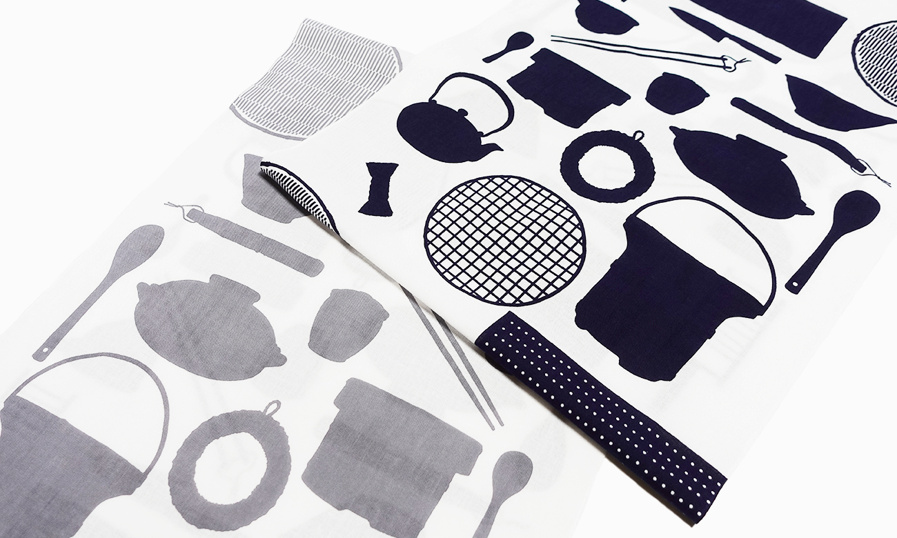 野菜柄の手ぬぐいと並べても馴染むよう、落ち着いた濃紺とグレーの2色で仕上げました。